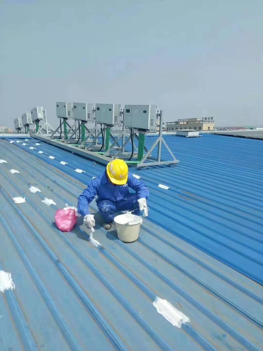 彩鋼瓦屋面防水湖南城工防水有限公司的工作員工在進行彩鋼瓦屋頂局部防水彩鋼瓦
